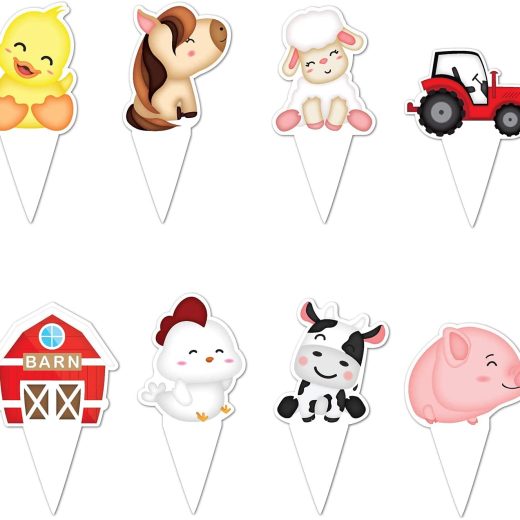 Farm Animal Cupcake Toppers 48 Count – Barn Animal Cupcake Toppers – Create a Super Cute Farm Themed Baby Shower and Birthdays – Old McDonald Decorations thats Easy to Use – Set of 48 by Pretty Cute Studios
