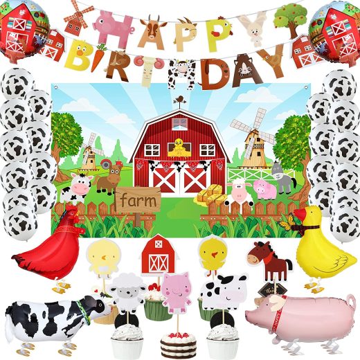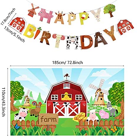 Sufficient quantity: you will receive 35 pieces farm animals theme party supplies in total, including birthday banner, balloons, backdrop and cupcake topper, enough to meet your decoration needs; You can easily take the stress out of party planning and entertain guests Package includes: 1 piece farm animals birthday party backdrop (185 x 110 cm/ 72.8 x 43.3 inch), 1 piece 5-7 inch happy birthday banner, 2 pieces 18 inch foil balloons, 4 pieces 16-25 inch animal walking balloons (including rooster, duck, pig and cow), 20 pieces 12 inch cow print latex balloons, and 7 pieces 2-3 inch farm animal cupcake toppers Cute farm animals: the walking farm animal balloons are funny, which will look like real animals standing behind you; You can inflate them up with air and tie them with strings, and children will have a lot of fun to play with balloons; Other animal party decorations are also cute and suitable for decorating your home or themed party Farm animal theme: the walking animal balloons and cow print balloons are very suitable for kids, and you can use them for different purpose; They will create a breezy and joyful day for you, and keep entertaining you to inflate with air after party; The balloons inside will be a good addition to help you build a rural style Applicable occasions: the farm animals birthday decorations are appropriate for both boys and girls, and also suitable for baby shower, farm theme birthday party, barn theme party, animal party decorations and pet party supplies