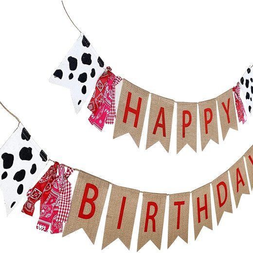 Be the first to review “Farm Theme Birthday Banner, Burlap Barn Party Sign, Cow Print Fabric Happy Bday Banner Decorations” Cancel reply