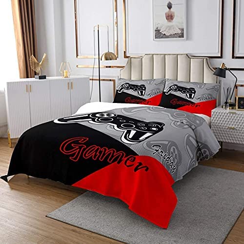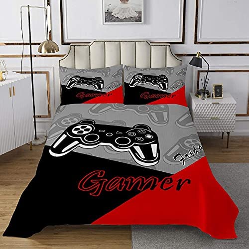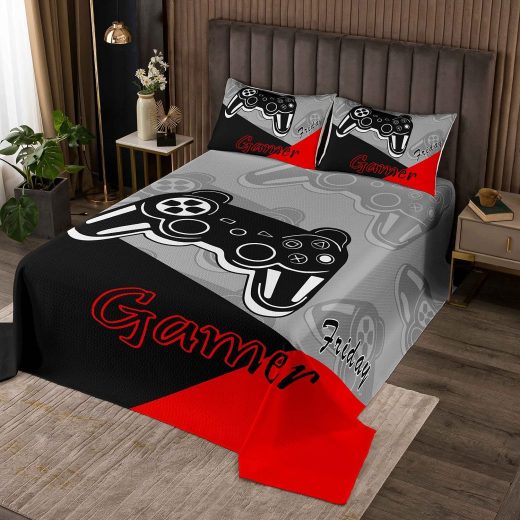 Feelyou 2 Pieces Gamer Bedspread Gaming Coverlet Set for Kids Boys Video Game Controller Bedding Quilt Sets with 1 Pillowcase (Twin)