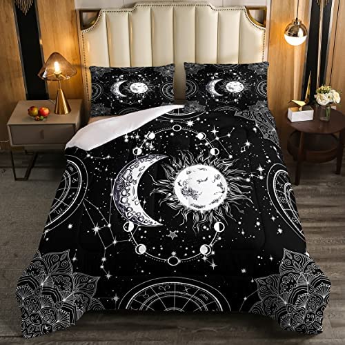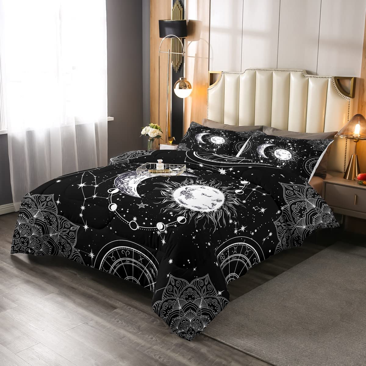 Feelyou Galaxy Bedding Set Constellation Comforter Set for Kids Boys Girls Teens Gothic Style Boho Mandala Comforter Breathable Sun and Moon Duvet Set Black White Room Decor Quilt Set Twin Size