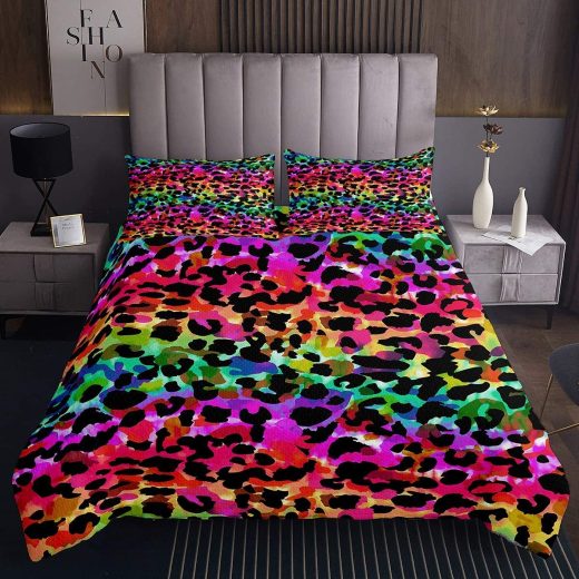 Feelyou Girls Leopard Bedspread Colorful Cheetah Print Coverlet for Kids Women Wildlife Style Quilt Set Chic Luxury Bed Cover Bedroom Collection 3Pcs Queen Size