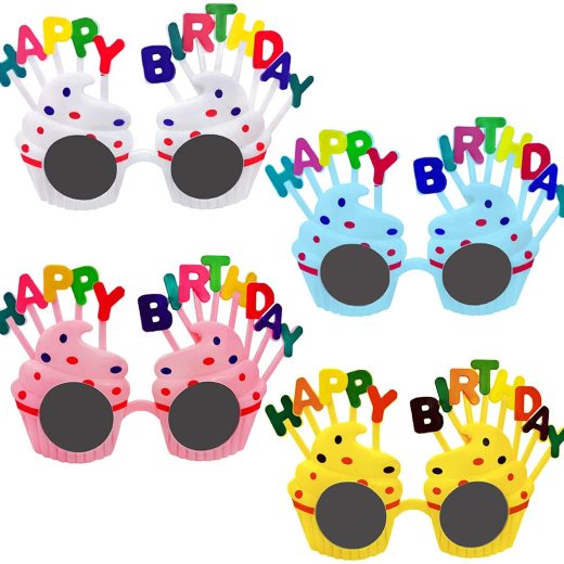 Fegdyi 4 Pairs of Sweet Cream Birthday Cake Glasses Happy Birthday Party Novel Sunglasses