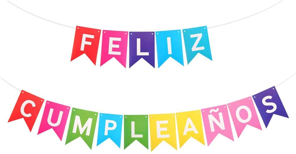 Feliz Cumpleanos Banner Colorful Spanish Happy Birthday Bunting Banner for Mexican Fiesta Theme Party Decorations, Birthday Party Supply Favors