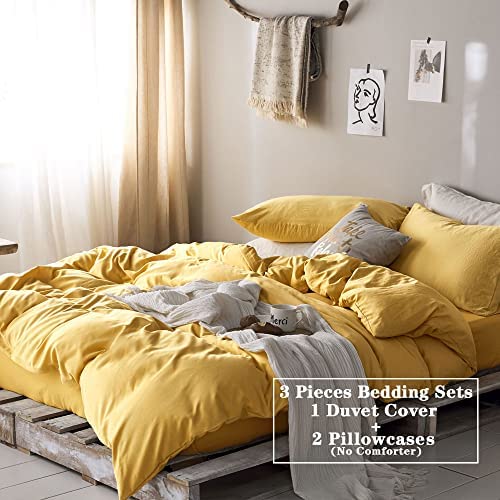 FenDie King Size Duvet Cover Yellow Soft Microfiber Solid Color Bedding Set Lightweight Comforter Cover Teens Girl Women All Seasons Bed Cover and 2 Pillow Cases