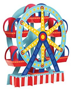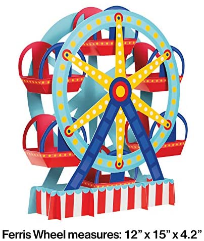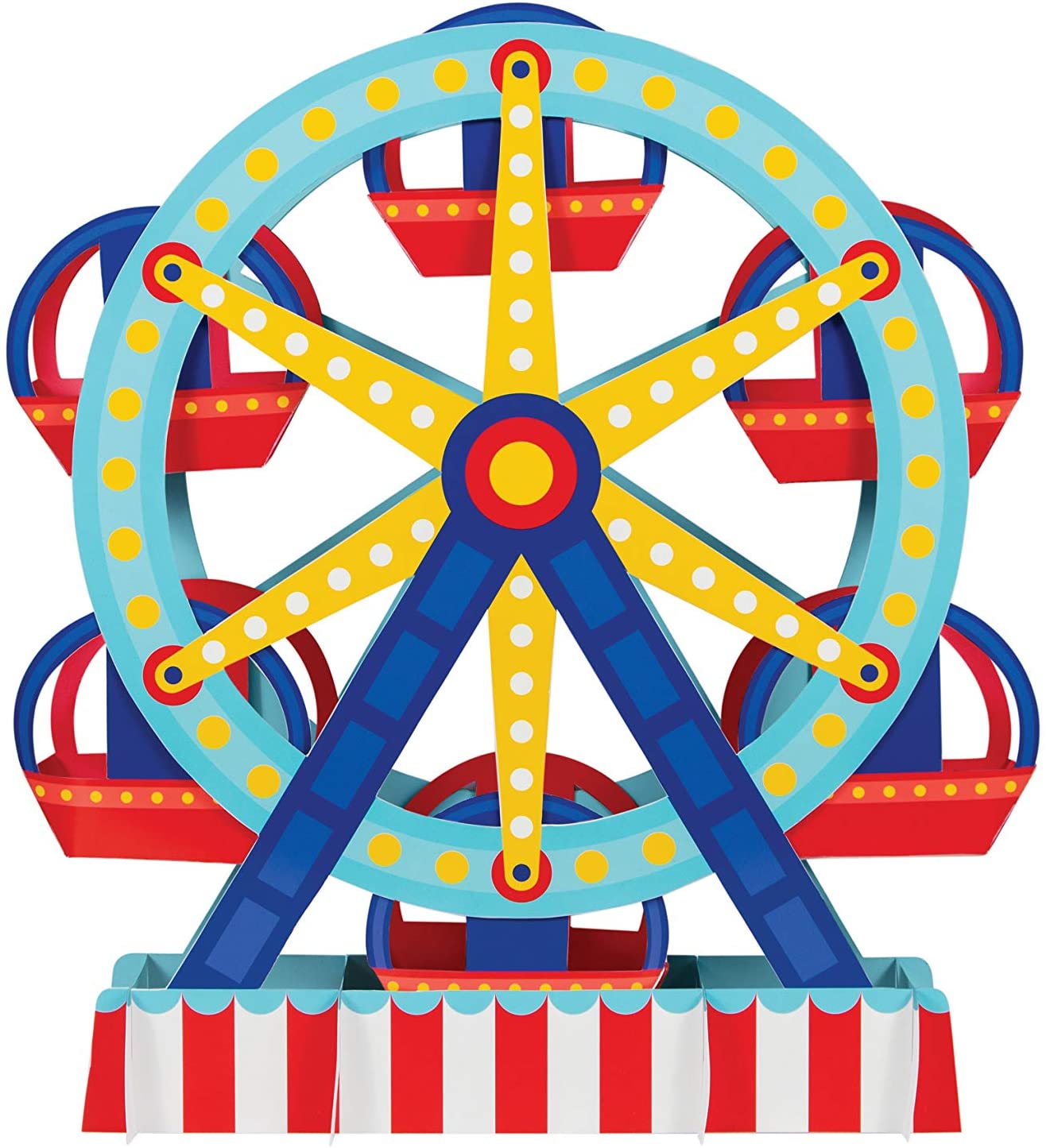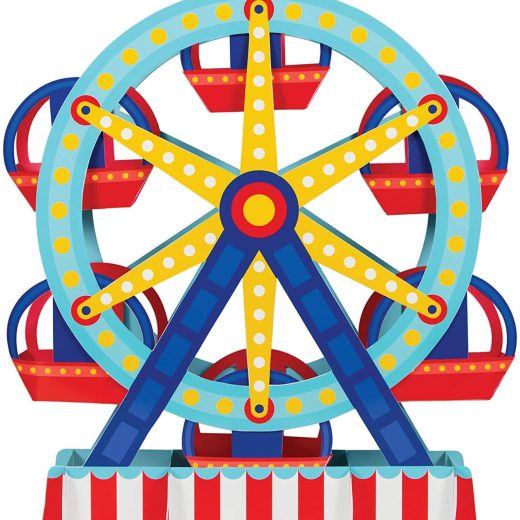 Add a touch of whimsy to your party decorations with help from our Ferris Wheel Centerpiece. This centerpiece measures 12 x 15 and features an impressive 3-D design with an intricate amount of detail so it looks just like a classic carnival Ferris wheel. Place the Ferris Wheel Centerpiece on the guest table, the gift table, or the cake table for a fun touch. Complete your celebration with other items from our Carnival collection. Our Ferris Wheel Centerpiece is sold one per package.