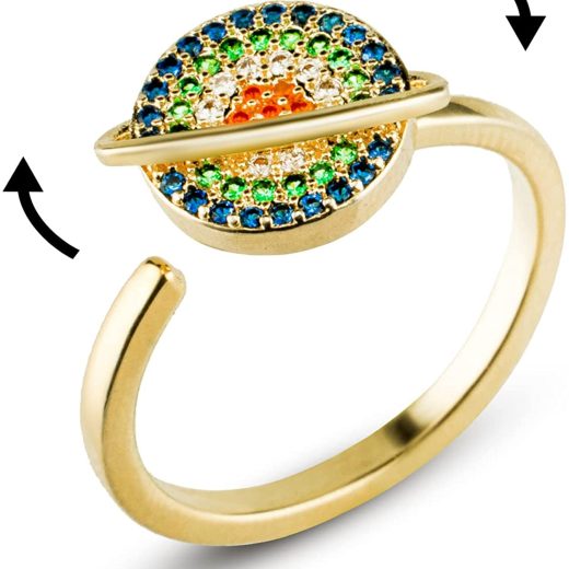 Fidget Anxiety Ring for Women Planet Spinner Ring Open Adjustable Fidget Rings for Anxiety Relieving Stress CZ Stackable Rings Fidget Jewelry Women Girl