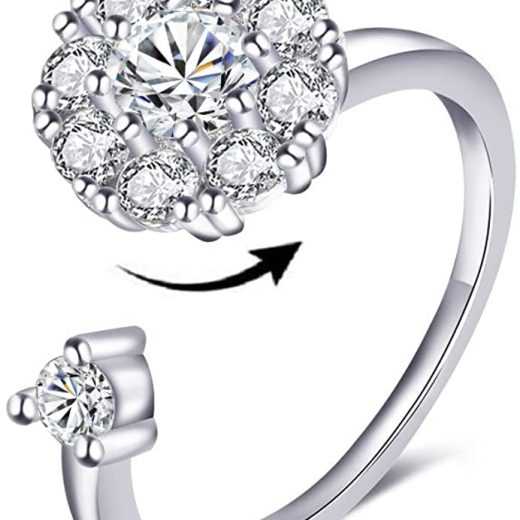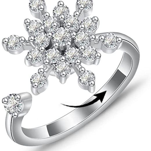 Fidget Spinner Rings for Women, snowflake Rotating Spinning Anxiety Ring for Women Girlfriend Her or Man ,Adjustable Open Ring Cubic Zirconia Sunfl…