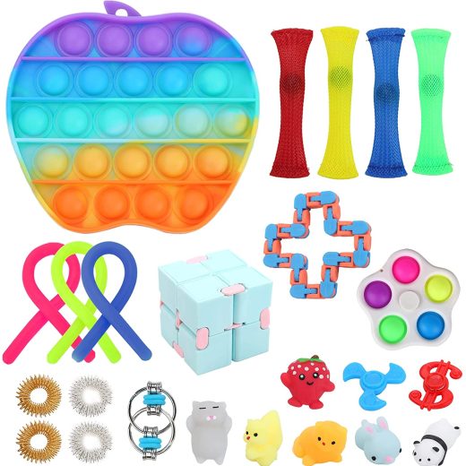 Fidget Toy Set, 24pcs Fidget Pack Pop Stress Relief Anti Anxiety Fidgets Hand Toys Bundle with Rainbow Pop Toy for Kids and Adults Gift for Birthday, Party Favor, Classroom Rewards Christmas Stocking