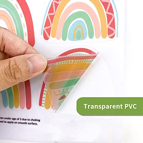 Finduat 36 Pcs Boho Rainbow Wall Stickers Decals, Cute Colorful Stickers Wallpaper, Stick and Peel Removable Vinyl Waterproof for Kids Room Bedroom Nursery Room