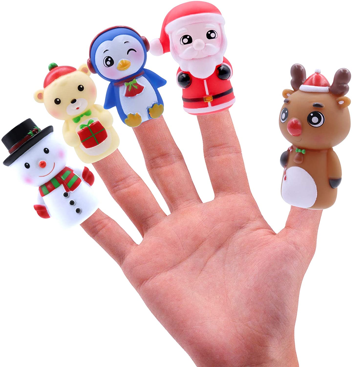 Finger Puppets for Kids, Colorful Rubber Finger Puppets, Bath Finger Puppets, Party Favors for Kids, Goodie Bag Fillers, Character Storytelling Puppet Toy for Teaching Show (Christmas)