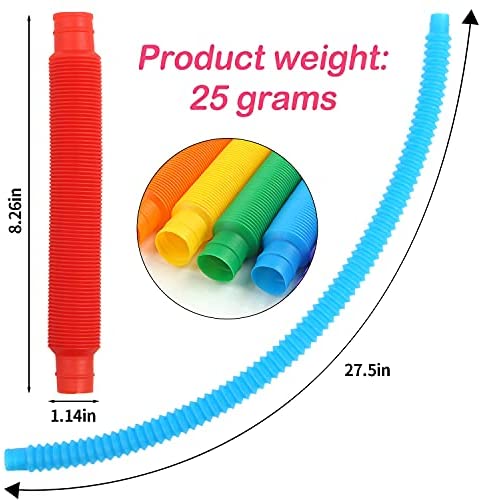 PRODUCT SPECIFICATIONS:These pop tube toys are made of plastic (PE) non-toxic and odorless,safe for kids and can be reused.The contraction length i…