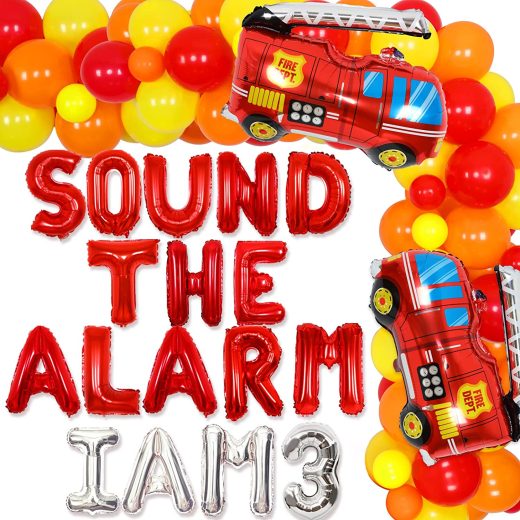 FIRE TRUCK PARTY DECORATIONS: Package includes 75 different size latex balloons, 1 set of sound the alarm i am 3 foil balloons 16 inches, 2 fire truck foil balloons (27 x 32 inches), 1 roll of 100 adhesive dots, 16.4ft balloon tape strip. All the decorations you need are in the package. BRIGHT COLORS: The fire truck balloon garland kit is designed in red, yellow and orange. These bright colors make little one’s birthday party vibrant. WIDE APPLICATION: Fire engine party decorations are very suitable for boys or girls sound the alarm party supplies, fireman/firefighter birthday party, fire department party decor, rescue party decorations, 3th birthday party favors. SOUND THE ALARM IM 3: The sound the alarm foil balloons are red, i am 3 foil balloons are silver. This color combination is very eye-catching. Notice: The sound the alarm i am 3 foil balloons 16 inches cannot float with helium, so you can hang or attach them on the window, wall, balloon garland arch or other places. FIRE TRUCK FOIL BALLOONS: The fire truck foil balloons are vivid, which can create a party atmosphere and add more fun for kids’ birthday party.