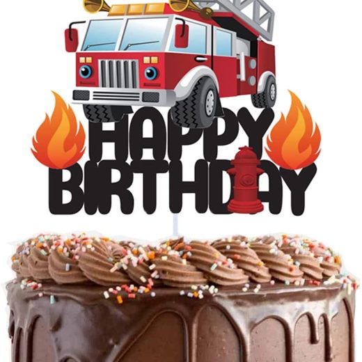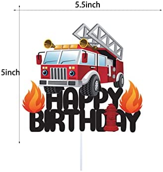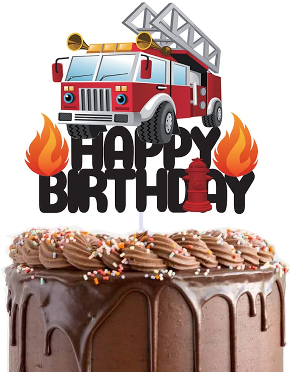 Fire Truck Happy Birthday Cake Topper ,Kids Boy and Girl Fireman Party Decoration