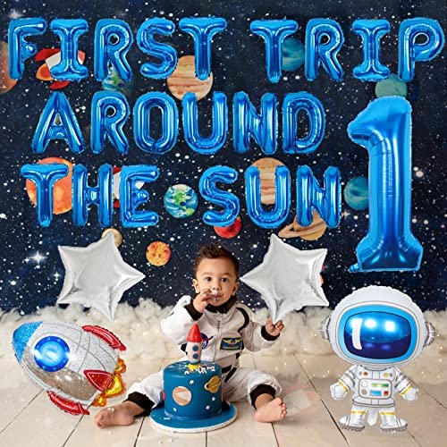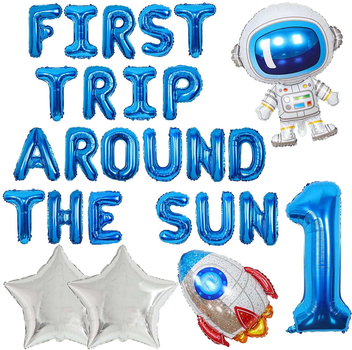 First Trip Around the Sun Outer Space 1st Birthday Party Decorations Birthday Astronaut Rocket Balloons Blue Silver for Boys First Birthday Party Supplies