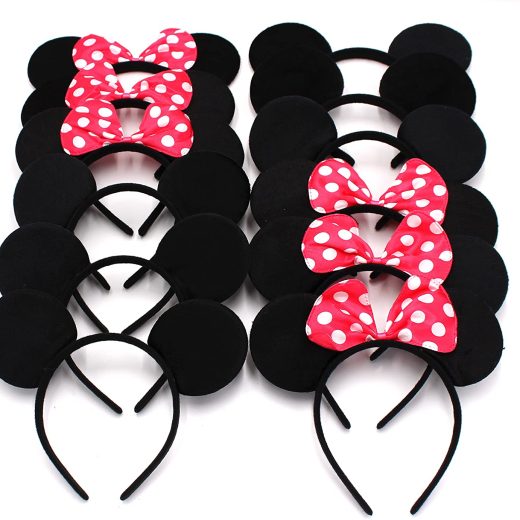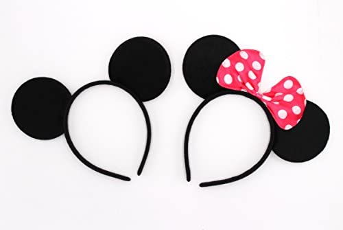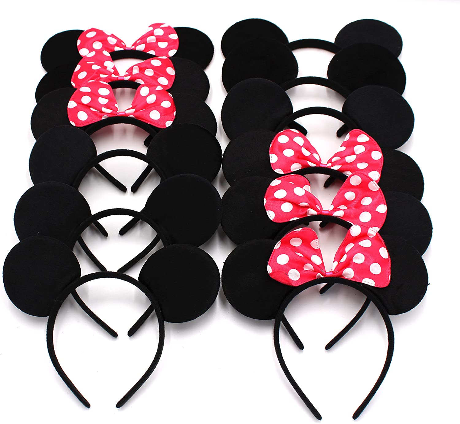 Made of short plush fabrics and adorable bow High quality & sturdy ears One size fits most (Adults included) Pack of 12 headbands, 6 Black & 6 Pink Bow Headband for Boys and Girls Birthday Party or Celebrations Party Favors — Great Gift Idea Headband for children and adults