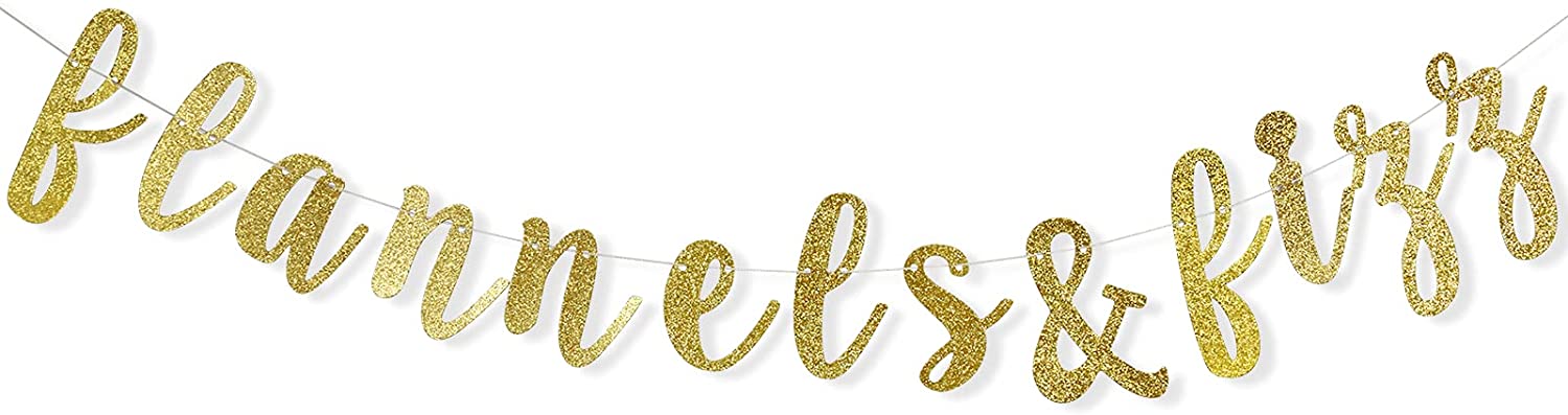 Flannels and Fizz Banner, Glamping Themed Party Decorations, Mountain Bachelorette Party Decor Supplies, Winter Cabin Bach Weekend Decoration, Gold Glitter