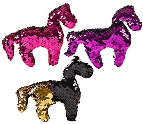 Flip Sequin Mini Animals, Toys for Boys & Girls, Color Changing Fabric, Bulk Birthday Party Favors for Kids, School Treasure Box Prizes for Classroom, Stocking Stuffers (5 Inch Horse)