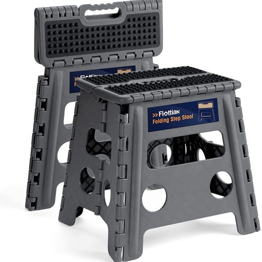 DETAILS & DIMENSIONS – Maximum weight capacity of 300-pounds when sitting on; measures 11.2-inches long by 8.5-inches wide by 13-inches high when unfolded; measures 14-inches long by 2-inches wide by 16.9-inches high when folded. SAFETY FIRST – Our step stool has anti-skid top and rubber feet designed for maximum grip , preventing slippage. Unique, grip-dot textured surface makes the folding step stool safe for everyone, including kids. Also, the rounded corners, and tight hinges, make it safer for the child to use as it protects him/her from possible bruises that could result from sharp edges. SPACE SAVING & PORTABLE – The collapsible step stools aims to conserve space after it is folded up. Its foldable nature makes it super compact (only 2 inches wide). Store it virtually anywhere.It folds or unfolds with a single gesture – great for when you have your other hand full. this handy helper can be used by even the smallest members of your family. MULTIPURPOSE STEP STOOL – Using it for sitting on it while performing different activities like coloring, painting, having a meal, etc.Great for cleaning the top of the fridge, changing light bulbs, and accessing high cabinets; perfect for anyone in need of a boost to reach the bathroom sink or kitchen counter. BUY WITH 100% CONFIDENCE – If for any reason you are unhappy with our premium quality step stool, please do not hesitate to contact us. We take full responsibility for the quality of our products and will do our best to solve your problem quickly and efficiently!