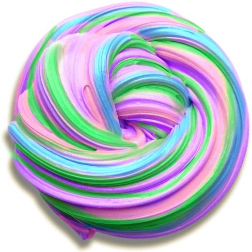 Comes with blue, pink, green and purple, 4 colors for your fun and play. It will become a new color if you mix up the 4 colors together. This fluffy slime is incredibly satisfying to play with – squeeze it, twist it, smash it or create arts with it, super soft and stretchy, wonderful stress and anxiety reducer Absolutely Safe Slime for Kids and Adults. ASTM certified, completely safe for children. Cannot be eaten, not for too small kids Non Sticky Slime. Pinch it or pull it over and over, absolutely wont stick to your hands, giving you the most wonderful slime experience. Easy Storage. Comes in a plastic jar container with our . Please put the slime back in the container when you dont use it. The slime will get dry if exposed in the air for quite a long time.