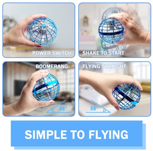 A cool way for adults and children to learn and experience aviation physics. The flight trajectory can be controlled by changing the balls angle;Magic flying ball can climb straight into the air on its own, before it comes back down for a safe landing in your palm.can perform more incredible aerobatic tricks and stunts Entertainment and fitness: its a fun way to exercise and improve eye and brain coordination. An innovative way for the children to put down their mobile phones and move. Best gift outdoor toys for kids ages 8-12 Impress your friends and family: after a bit of training you can easily master the special effects of whirling, straight-line flight and manoeuvring of corners. Very easy to control: just adjust the angle to change direction of travel Colorful light USB Rechargeable: the flying ball changes colors in flight, most cool at night, your flying ball toy will look like a neon shooting star when you launch it across the sky.Built-in rechargeable battery with fast charging time. Our flying saucer mini drone can be charged through any USB port Safe and worry free: all moving parts are covered by the surrounding soft PVC, built-in acceleration sensor helps to avoid collisions and locked rotor detection ensures further safety. The built-in rechargeable high-performance battery and USB charging interface helps to conserve energy and protect the environment