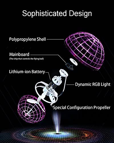 ?Gameplays – Spin, Progressive, and Levitation. After lightly pressing the button, open the palm and hold up the bottom of the flying ball to start to fly. Besides, pushing both hands horizontally and straight forward can be transferred. ?Magic – You can push the fly ball at will with skill to keep it floating in the air. When thrown from different angles, there will be different moving tracks. Start the interactive play just by throwing the fly orb in the air, grab & flip it to stop. Whether you have a magic wand or not, you could do magic like a magician. ?Charm – The infinity orb has over 3 kinds of dazzling LED lights, push it out and it will glow brilliantly in flight looking like a neon shooting star. Furthermore, you can choose a piece of the DIY stickers to create a cute little animal-shaped nebula orb. ?Safety – The material of nebula ball is surprisingly soft and lightweight, which makes you grasp it with your hands without any scruples when playing. Built-in acceleration sensor helps to avoid collisions and locked rotor detection ensures further safety. The built-in rechargeable high-performance battery and USB charging interface help to conserve energy and protect the environment. ?Play – The flying ball toy can be used as a stress reliever when youre alone, or as a team skill game when youre playing with friends. Its a fun way to exercise and improve eye and brain coordination. Fun knows no age.