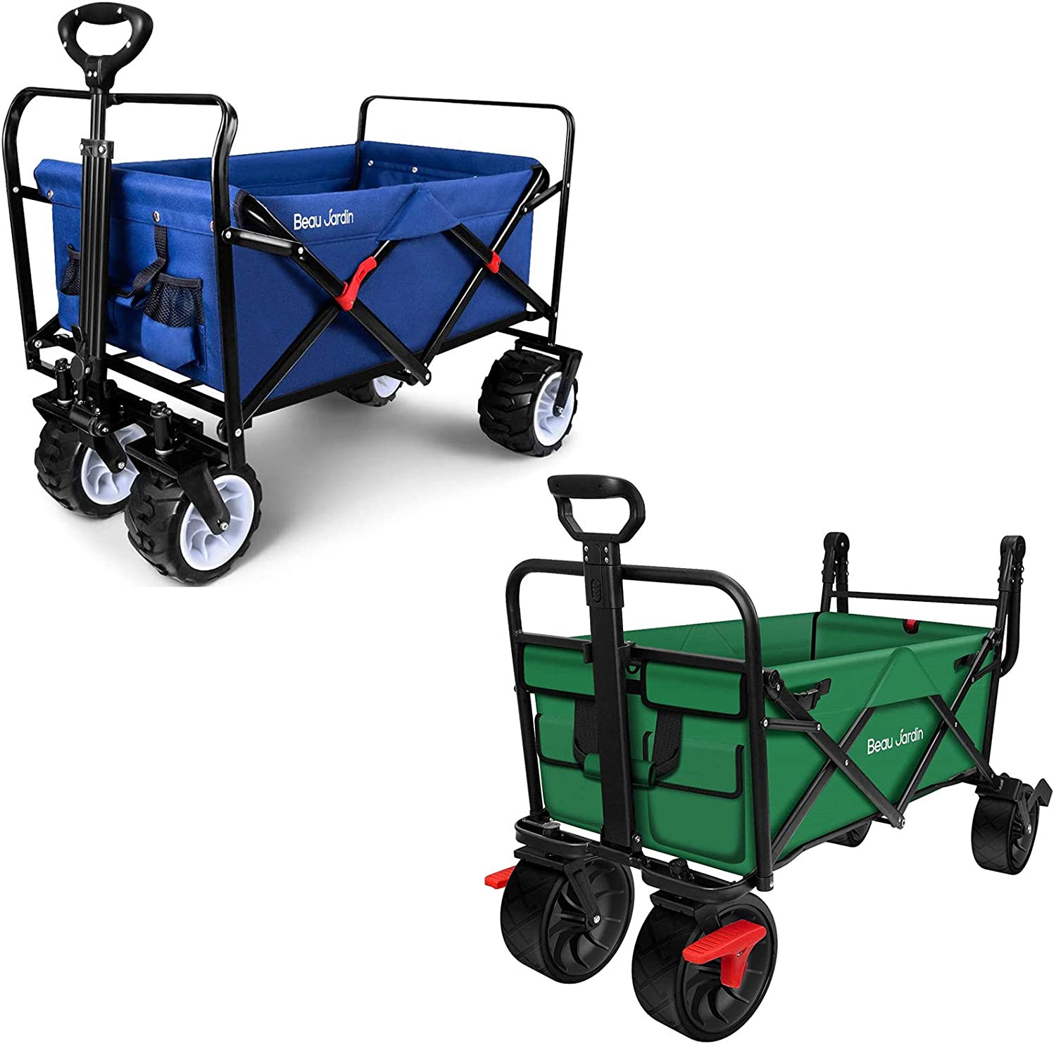 Folding Pull Wagon Bunle Green Push Pull Freestanding Wagon