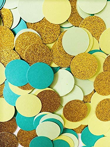 Fonder Mols Confettis Circles(400pcs, Sage Green & Gold Glitter) for Tropical Rain Forest Inspired Party Table Scatters Decorations, Lulu Party, Aloha Party, Jungle Party & Events Decor