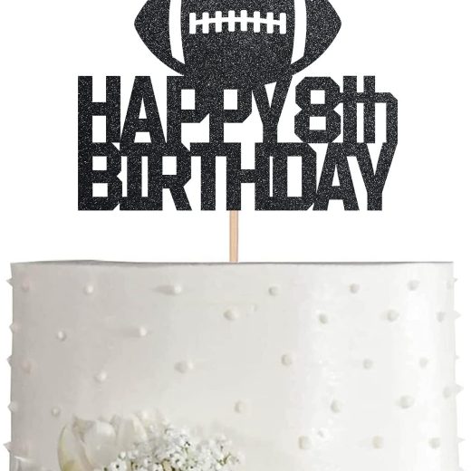 Football 8th Birthday Cake Topper Black Glitter Sport Boy Girl 8 Years Birthday Party Supplies, Decorations