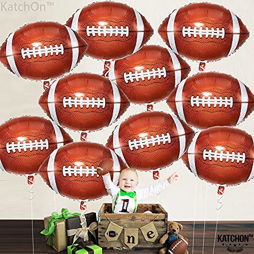 GIANT – 18 INCH | SCORE A GOAL WITH THIS FOOTBALL FOIL BALLOON : Are you a sports fanatic Let your heart race with anticipation for these sports mylar balloons that will make your football party decorations standout. These 4D Sphere football balloons can be backdrop for football party theme decorations. These football decorations for birthday party hanging balls, photo props, and table decor for football party favors. HELIUM SUPPORTED – GAME DAY BALLOONS : These large football balloons helium for football birthday party decorations will be a definite hit for your tailgate birthday decorations with the pack of 10 and Perfect Size 18 inch, football balloon, helium supported that will hold attention, it is self sealing valve and helium football balloons. BUY WITH CONFIDENCE | 100% GUARANTEED SATISFACTION – Have no worries in purchasing this Football Punch Balloons for Football Theme Baby Shower Decorations. We are very confident with its quality and durability of this football sports theme decorations. 18” football balloon made of high quality foil, provide your mylar football balloons for party a perfect display. If you’re not satisfied with football mylar balloon you will get full refund or product replacement. REUSABLE – EASY TO INFLATE : This fantasy football shaped balloons are made of sturdy grade A quality material and can stand the long-hour display in your homecoming football party decorations and the best part is You can also deflate and store this football balloons garland kit for future use. FOOTBALL DRAFT PARTY DECORATIONS : Get together and Use this football balloon for football party decorations party supplies, football balloon arch backdrop for football themed birthday party supplies, kids first year down football birthday party, Graduation Football Decorations, football party supplies for gender reveal party, beach or pool party decorations that sure excites every fan.