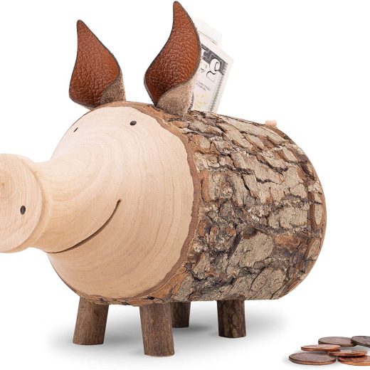 HANDCRAFTED PIGGY BANK – A truly rustic piece to help kids collect, store, and protect their money, this cute piggy bank for boys and girls is handcrafted from genuine forest wood to give them something that is both fun and functional. BEAUTIFUL CRAFTSMANSHIP – Handmade by a master craftsman, this kids piggy bank features adorable leather ears and tail, well-balanced legs, and a cute snout that will make you smile. One of the cutest savings bank for adults too! PERFECT PIGGY BANK FOR KIDS AND ADULTS – Teaching children the value of money is important when they are young, which is why our unique piggy bank makes one of the smartest one-of-a-kind unique gifts for girls and boys who are looking to save money with a bit of original flair. Perfect fit as woodland nursery decor or woodland baby shower gift. UNIQUE MONEY BANK & PIG DECOR – At 8.7” x 4.6” x 5.5” in size, our wooden coin money bank is small enough to fit on a desk, bookshelf, bedroom side table, and anywhere else they can be easily seen and still accessible for little hands. Perfect cute wooden decor. PREMIUM HANDMADE ARTISTRY – We take pride in the quality and originality of our Forest Decor handmade wooden piggy banks for adults and kids, which is why they come with a satisfaction guarantee to ensure your total happiness. Explore the rest of our rustic home decor collection for more handmade gifts and rustic decor.