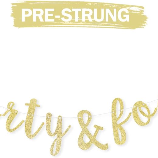 Forty & Foxy Gold Glitter Cursive Script Bunting Banner Cheers to 40th Happy Birthday Forty Years Old Funny Bday Party Decoration Fireplace Table Wall Sign – NO DIY REQUIRED