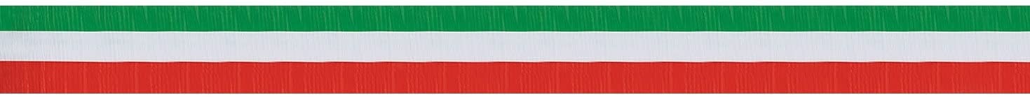 Beistle 22391-RWG Flame Resistant Red, White and Green Crepe Streamer measures 21/2 Inch by 30 feet. Made of red, white and green crepe stripes. Wr…