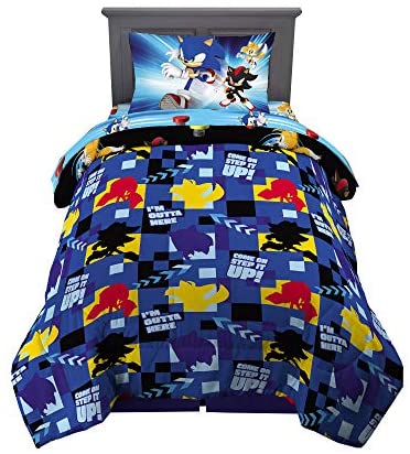 Franco Kids Bedding Super Soft Microfiber Comforter and Sheet Set, 4 Piece Twin Size, Sonic The Hedgehog