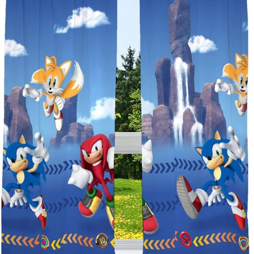 100% Microfiber SONIC THE HEDGEHOG DESIGN: Bring the fast-paced excitement of Sonic The Hedgehog into your child’s world with these bold and colorful drapes. Featuring Sonic, Knuckles and Tails from the iconic Sega franchise, these drapes add sunny skies to any room regardless of the weather outside. FUN ROOM DECORATION: A cute and colorful way to brighten up a child’s bedroom, nursery or playroom, these kids’ curtains feature a SEGA Sonic Rings in the Sky theme your little gamers will love. These vibrant drapes instantly add privacy and a playful look to the room of any Sonic fan. SOFT AND DURABLE: Made of soft microfiber, these window curtains offer a fun playful look and soft feel theyll love. These panels wont completely block the sunlight but filter it nicely for privacy making it a perfect home, school or preschool classroom, nursery decor accessory for children and toddlers EASY CARE: You can throw the window curtains into the washer and dryer without worrying about the colorful animated themed cartoon characters fading or the need for ironing. The material is wrinkle-resistant making it a great choice for any childs room. ITEM INCLUDES: 2 decorative window curtain panels. Each panel measures 41 (W) x 63 (L). The pair of 2 panels together measures 82 (W) x 63 (L) and is designed to fit a 36 – 48 wide window. The panels have a 2 rod pocket designed to fit a standard curtain or decorative rod.