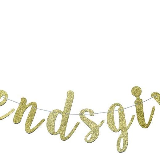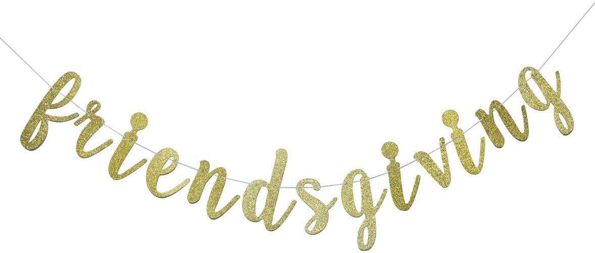 Friendsgiving Banner for Thanksgiving Day Friends Party Decorations Pre-strung Home Garland (Gold Glitter)