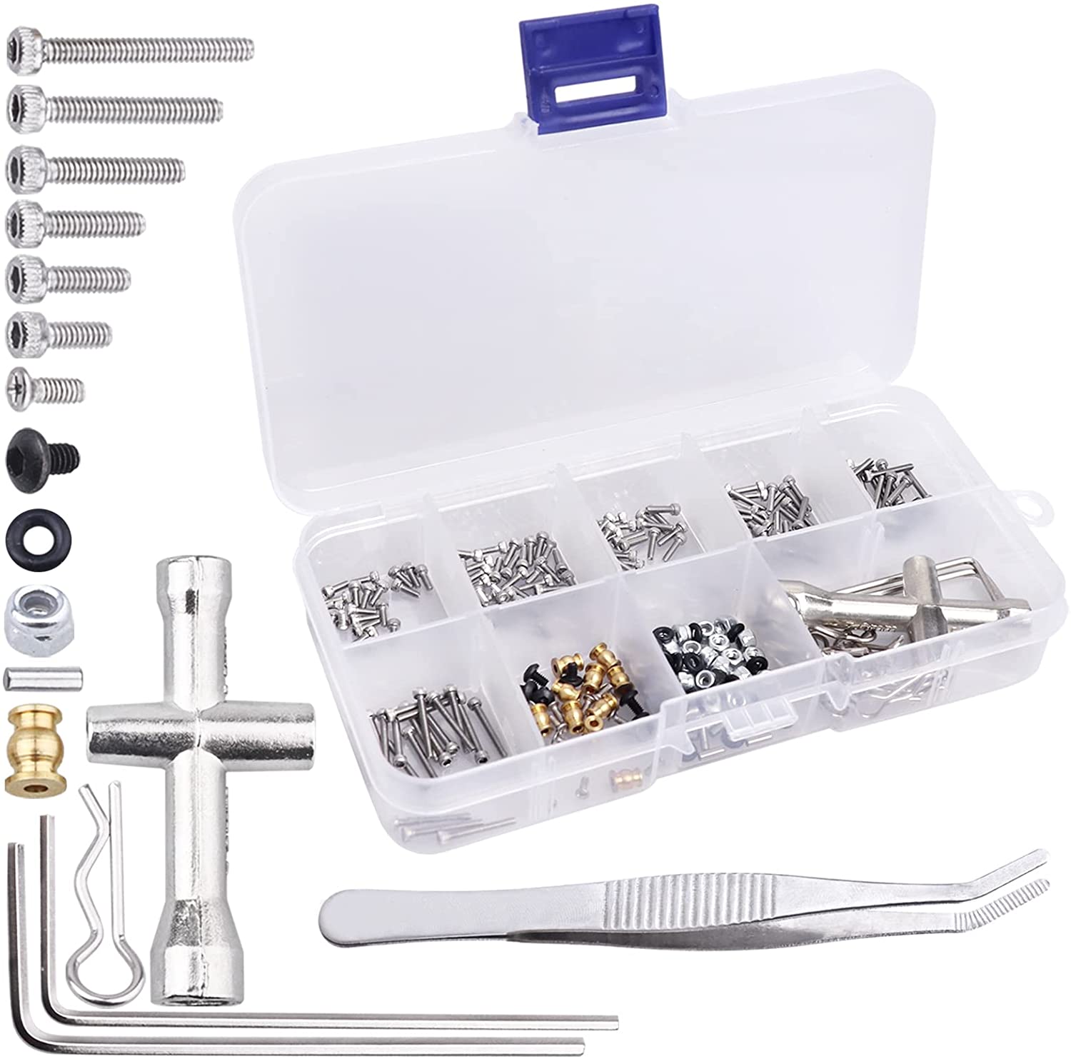 FriHobby 276Pcs RC Screw Kit RC Repair Tool Set for Hardware Fasteners for Axial SCX24 1/24 RC Crawler Truck Deadbolt C10 Jeep Betty