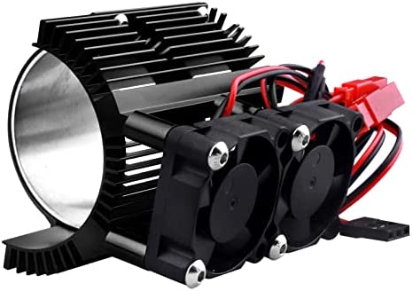 FriHobby Aluminum Motor Heat Sink with Twin Cooling Fan for 1/10 Traxxas E-Revo Summit, Compatible with 40-43mm Motors (Black)