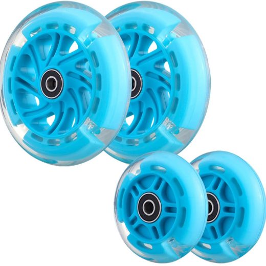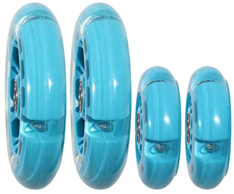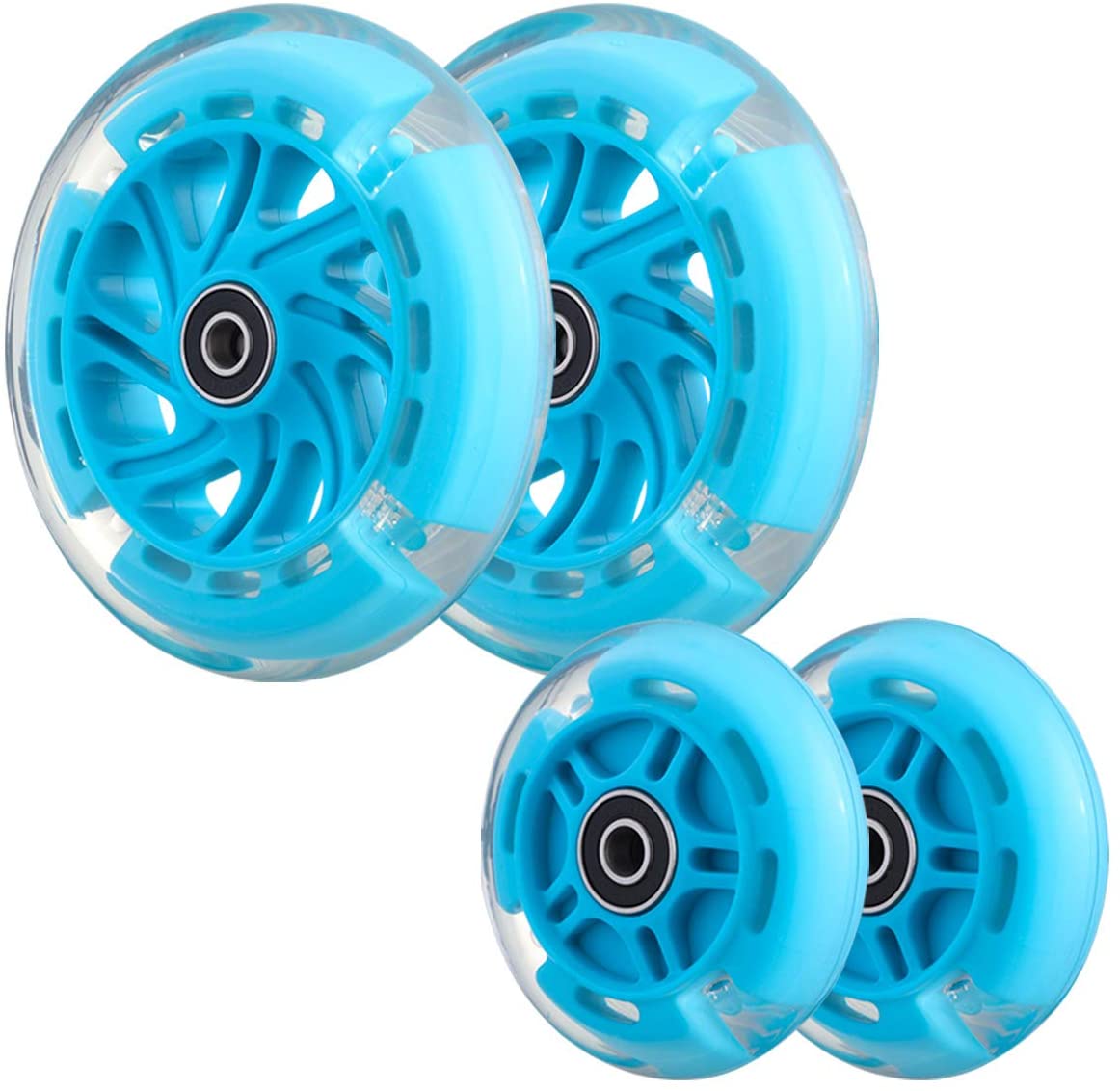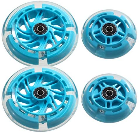 Front 120mm & Rear 80mm Light-Up Flashing 3-Wheeled kid Scooter Replacement Wheels, Complete Wheels Set for 3-Wheeled Kid Push Scooter, Set of 4 (Blue)