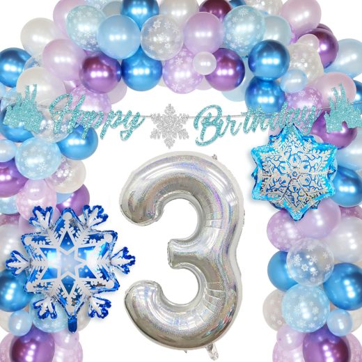 Frozen 3rd Birthday Party Supplies Girls Frozen Snowflake Balloon Garland Arch Kit Ice Princess Elsa Winter Wonderland 3rd Birthday Decorations