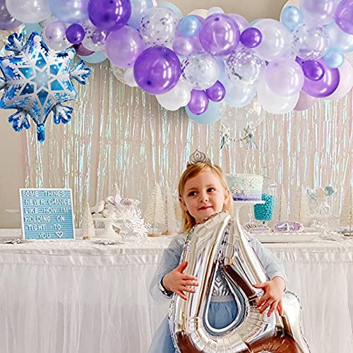 Frozen Birthday Party Supplies, 130PCS Purple Blue Frozen Balloon Arch Garland Kit for Frozen 2 Elsa Themed Birthday Party Decorations, Winter Wonderland Snowflake Party Decorations