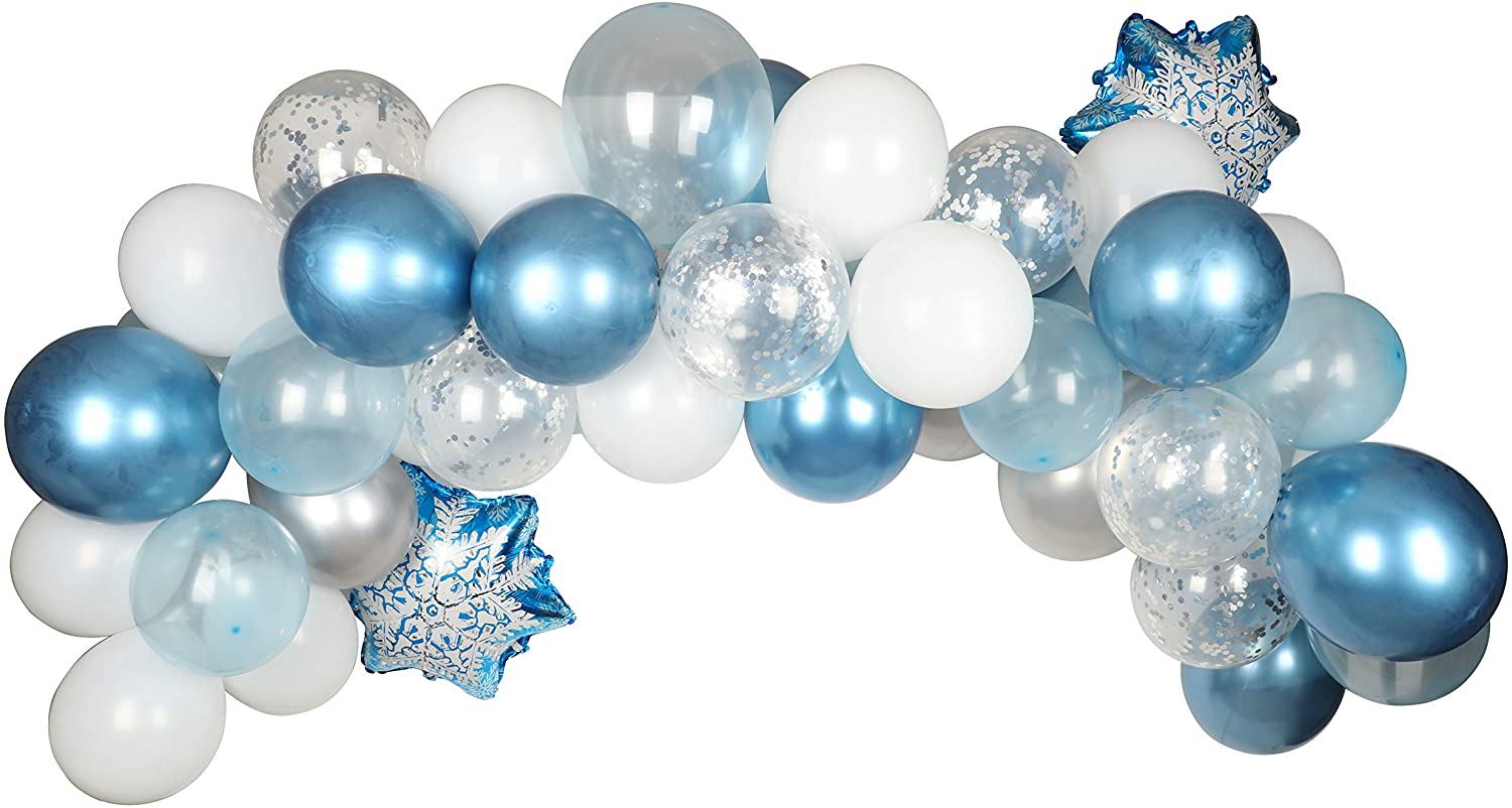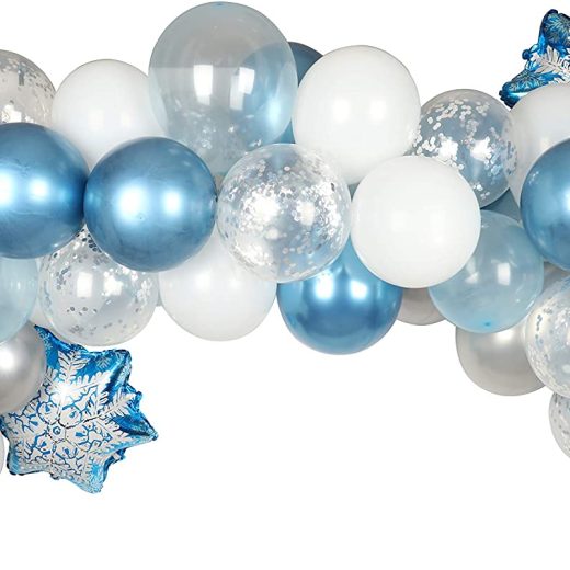 Our winter theme balloons set are made of 5 assorted materials, include blue crystal balloons,blue silver metallic balloons,silver confetti ,white latex balloons and snowflake foil balloons.This special constitutes make the arch more unique and impressive. Frozen-themed winter wonderland themed.Super cute party theme decoration.This balloon is a amazing birthday decorations items which will make any occasion more wonderful and an unforgettable moment for yourself,family and friends.It absolutely will be an perfect birthday party for a little girl who loves Elsa. The balloons are made with premium latex., non-toxic and non-odor,thick and strong.Very beautiful high quality.Balloon assembly chain and balloon glue included. It will be very simple to make the shape of the balloon in the picture. Add more fun and make every one feel the breath of winter.Perfect for indoor outdoor use, such as wedding party, home party, baby shower, birthday party, graduation, and any other festival party decorations.Pop the balloons will make a great fun when confetti flying out in party. Any quality problem or suggestion, welcome click seller contact button in your account to email us, we will solve it for you once get your message until you are satisfied.