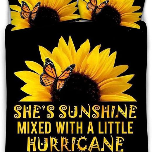 FUIBENG Sunflower Butterfly 3 Pcs Bedding Duvet Cover Sets 1 Ultra Soft Quilt Coverlet and 2 Pillow Shams Case for Women Girl Bedroom,You are Sunshine Mixed with A Little Hurricane(King, Black)