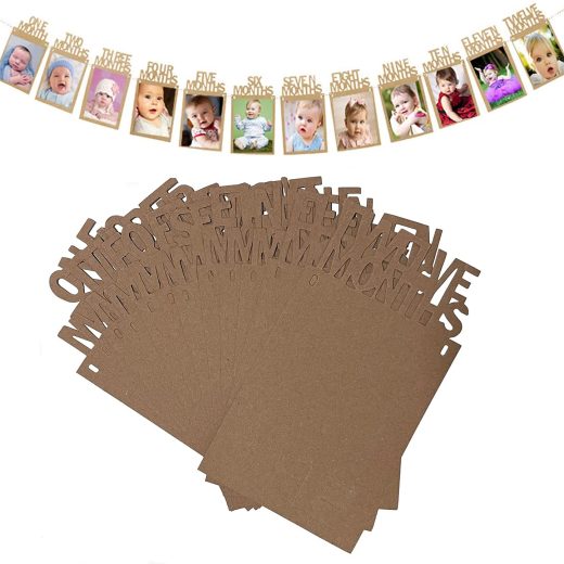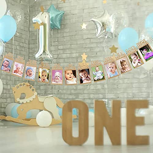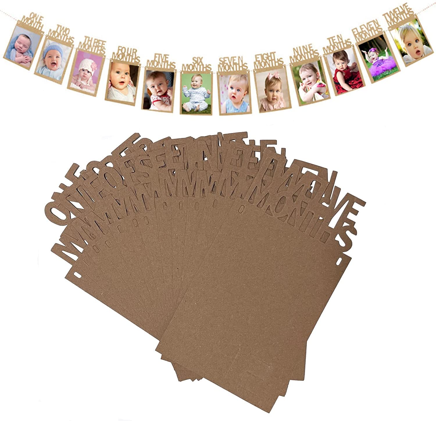 FUKUGAWA Monthly Photo Banner 1st Birthday Baby Photo Banner for 1 to 12 Months Celebration Bunting Decor Quality Thickened Card Paper Birthday Party Celebration Decor(Brown)