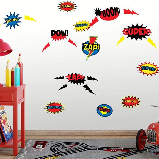 Superhero Words Comic Wall Decals (30) Room Decals 4”-11” with lots of Fun Smaller Decals to create a Big Impact! Place Anywhere! Peel & Stick Kids…