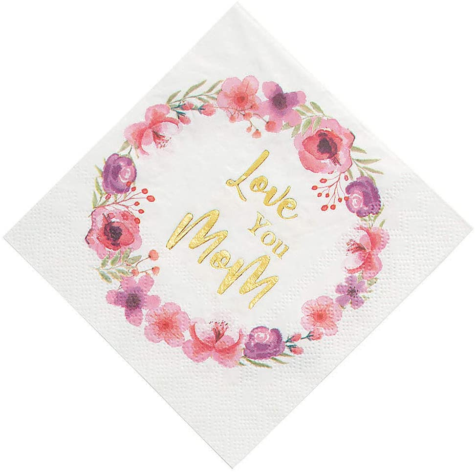 Fun Express Love You Mom Mothers Day Beverage Napkins – Party Supplies – 16 Pieces