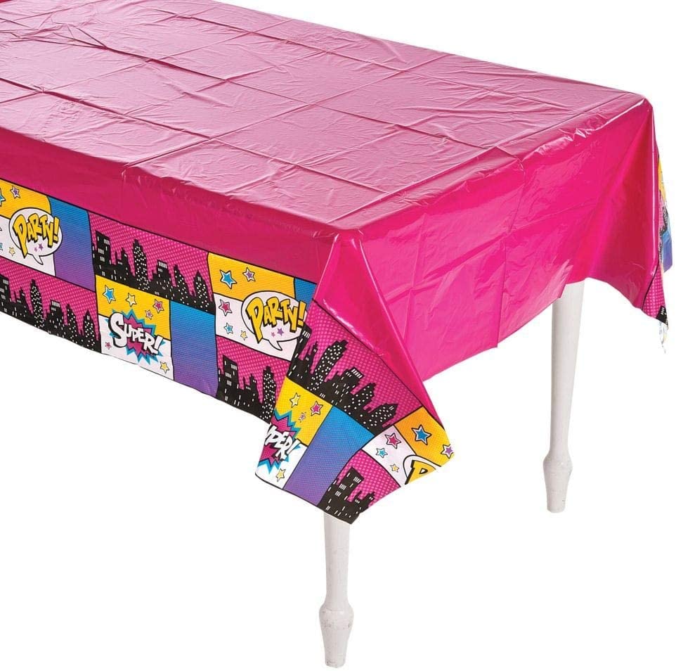 Fun Express Superhero Girl Tablecloth – Disposable Plastic Table Cover – Party Supplies
