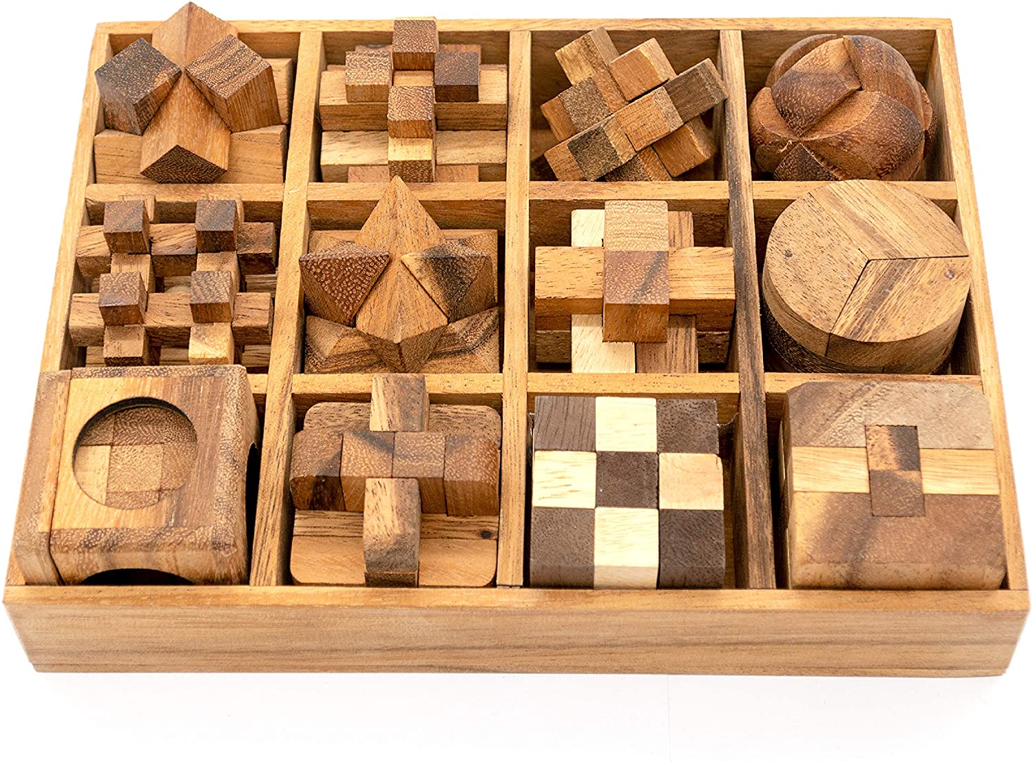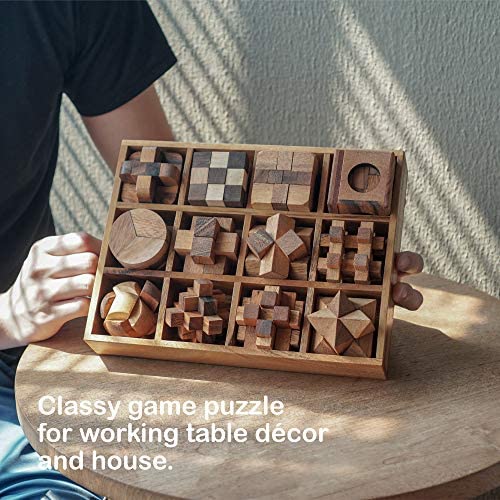 SMART GAMES FUN AND TEEN BOYS GIFT IDEAS – 3d puzzles for kids ages 10-12 and brain puzzles will give you the entertainment time in your family and friends, and these puzzle pieces are the cool wooden puzzle for spending the time to complete! And these brain games for teens also be teen gifts for your children on any occasion. MIND PUZZLES FOR ADULTS DECORATIONS – Brain teaser puzzle for adults and games kids for think fun games can use to be puzzle decorations for your home, working desk, and coffee table. Because of the wood designs itself that beauty and classic appropriately with any corners in the house. PUZZLES MIND GAMES WOODEN DESIGNS – The great brain logic games teasers kids puzzles and adults are made of 100% natural wood. Durable Monkey Pod wood has been used, and every piece of the set is handcrafted with great precision to ensure an easy and correct fit. The wood is hypoallergenic and chemical free with no discernible odor. WOODEN PUZZLES FOR ADULTS SET of 12 3D PUZZLE – A box puzzles for adults in a set of 12 challenging puzzles. Each puzzle is made with a number of smaller pieces that need to be disassembled and then put back together in a very precise order to recreate the shape. And proper to be a gift for dad and puzzle gifts for anyone as you want! BRAIN TEASERS PUZZLES GAMES – Wooden puzzle games for adults and games for kids 8-12 can play together for fun mind thinking to solve the challenges. This brain teaser puzzles that come with 12 games will give you different challenging games moment leisure activity.