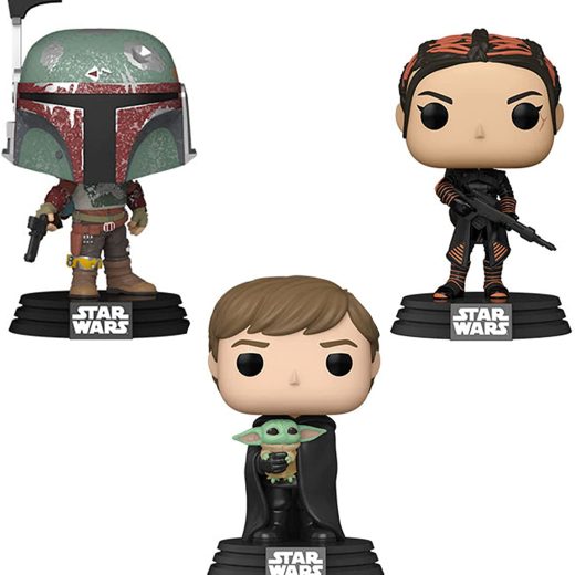 Funko Pop! Star Wars: Mandalorian Set of 3 – Cobb Vanth in Boba Fett Suit, Fennec Shand and Luke Skywalker w/Child