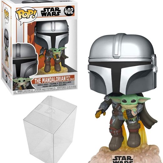 Funko Pop! Star Wars: The Mandalorian – Mandalorian Flying with The Child Bundle with 1 PopShield Pop Box Protector